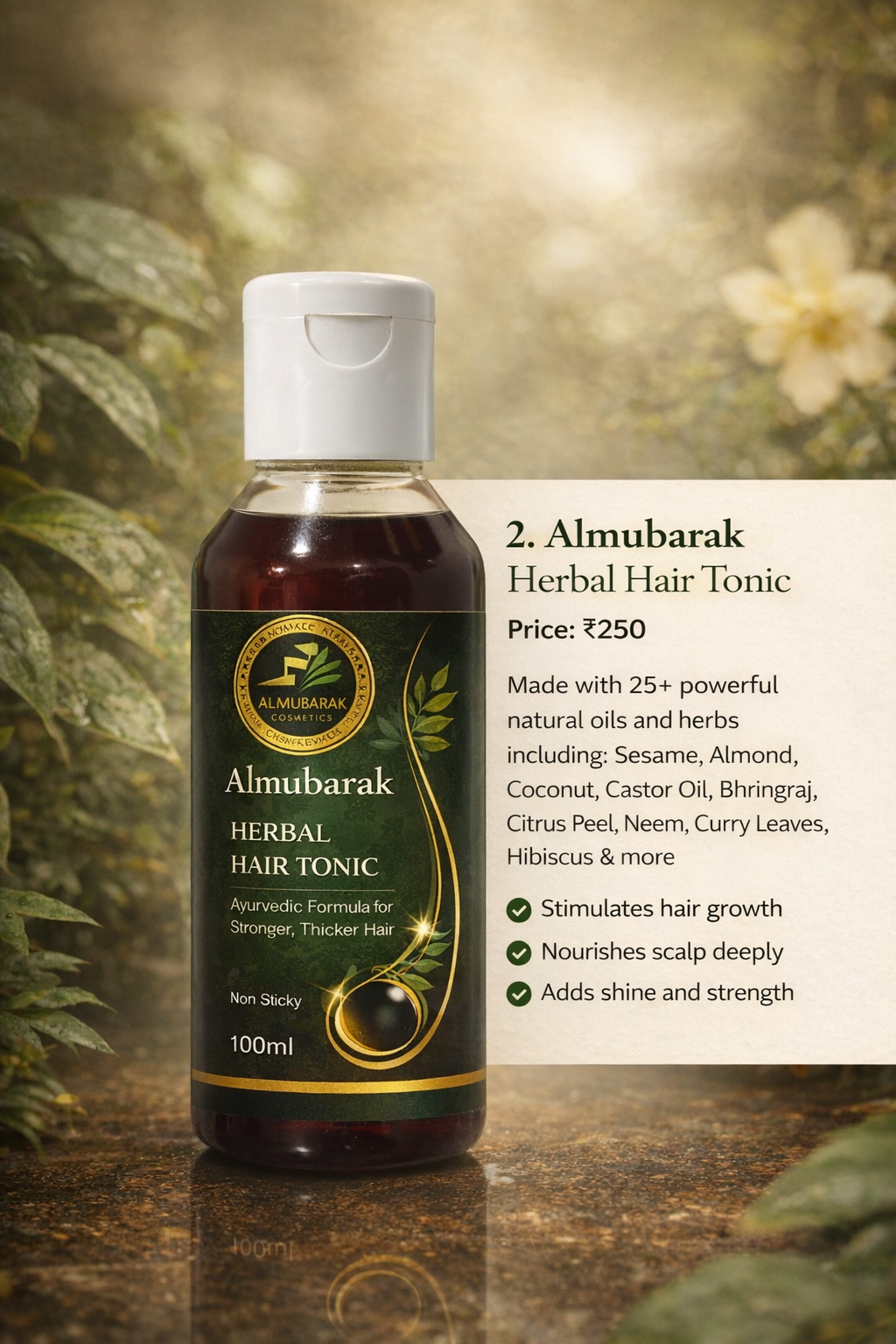 Almubarak Hair Tonic is a powerful herbal blend designed to strengthen hair from the roots and promote healthy growth. Enriched with natural extracts, it helps reduce hair fall, nourish the scalp, and improve hair thickness. Lightweight and non-greasy, it absorbs quickly to leave your hair stronger, healthier, and naturally vibrant.
